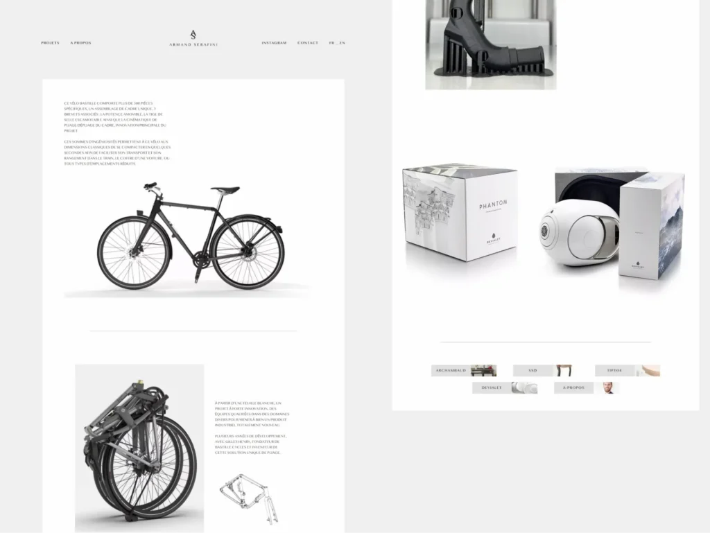 Pour atteindre une audience plus large, le site est disponible en français et en anglais. Cette caractéristique permet à Armand de présenter ses créations à un public international, renforçant ainsi sa présence et son influence dans le domaine du design.