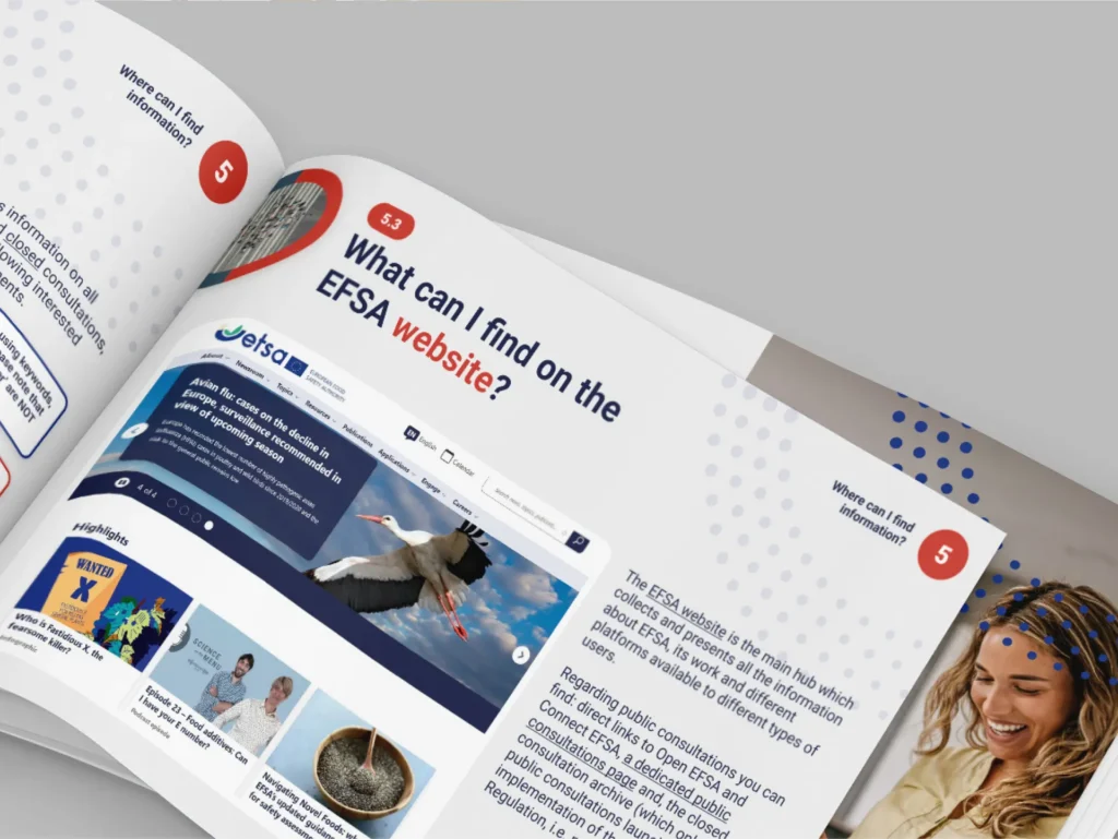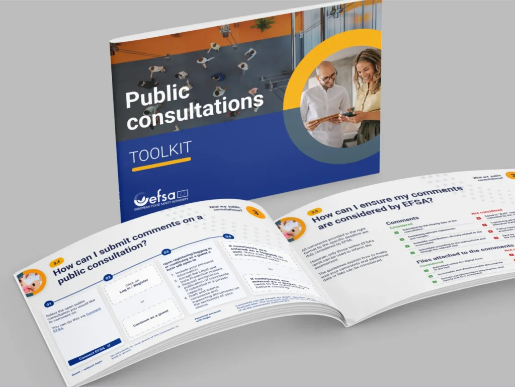 L’EFSA, l’Autorité européenne de sécurité des aliments, nous a confié la mission de mettre en page leur tout dernier toolkit destiné aux consultations publiques. Un projet à fort enjeu, mêlant des contenus denses, techniques, avec un objectif simple mais ambitieux : rendre l'information plus lisible, attractive et accessible au plus grand nombre.