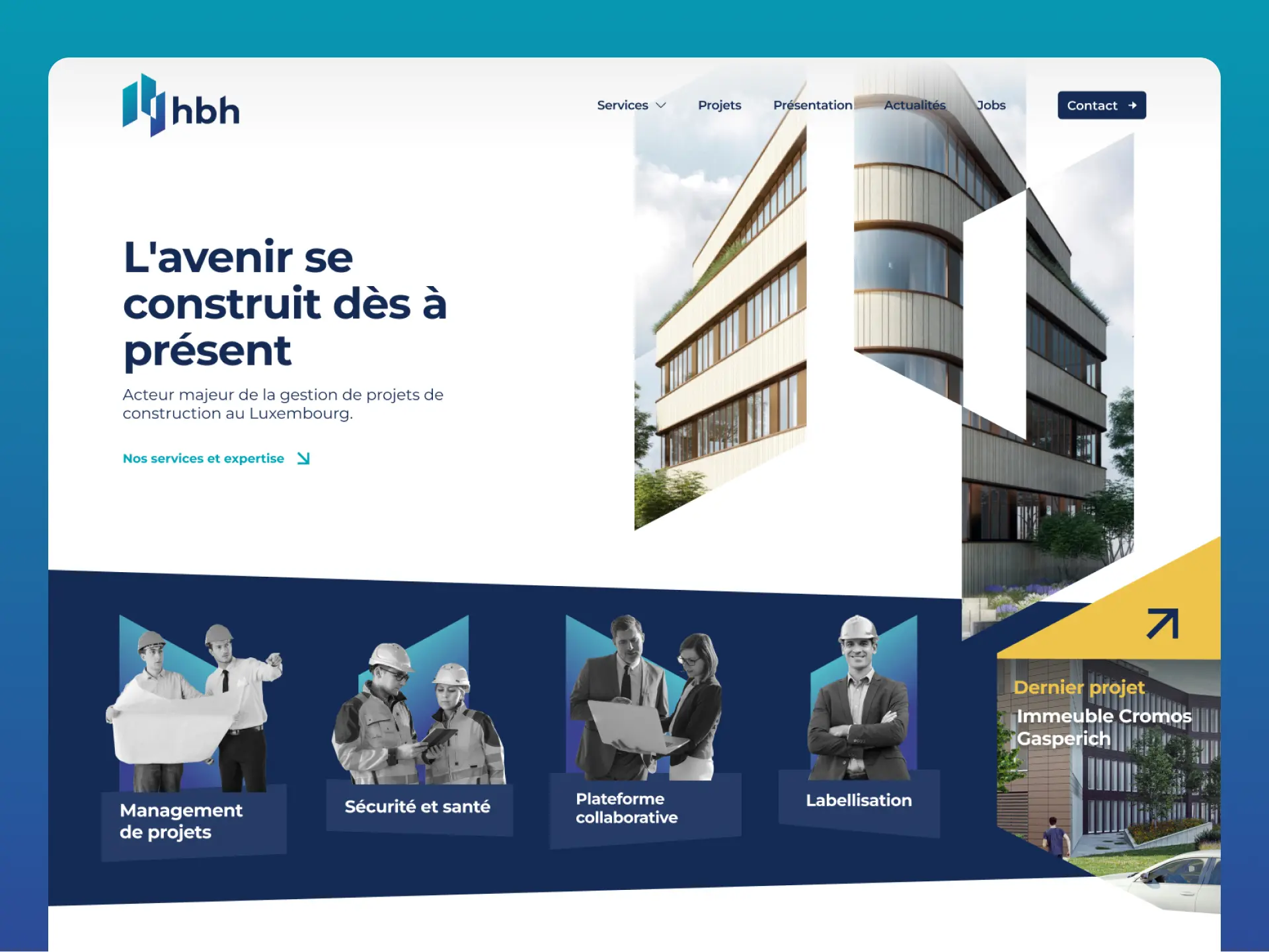 HBH est un pilier du secteur de la gestion de projets de construction au Luxembourg. Pour accompagner leur croissance et moderniser leur image, ils nous ont confié la refonte complète de leur site web. Leur objectif ? Disposer d’un outil fiable, performant et simple à administrer en interne, tout en respectant leur identité de marque.