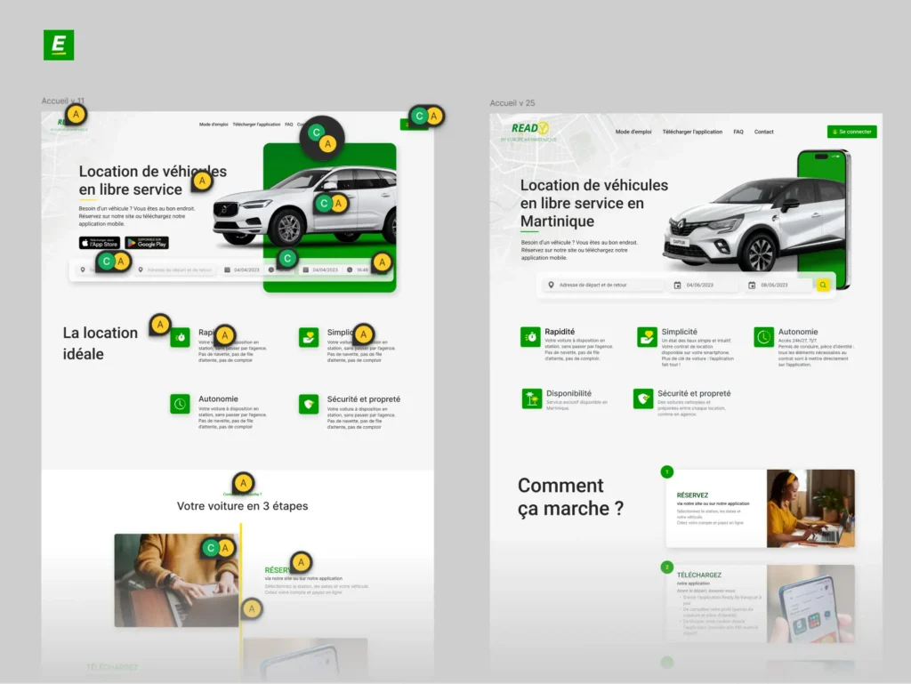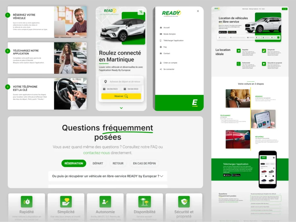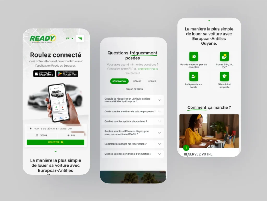 En partenariat avec Neo-Mobility, nous avons eu la chance de travailler avec Europcar, une marque de renommée internationale, pour la création de leur site vitrine Ready By Europcar, dédié à leur nouveau service de location de véhicules.