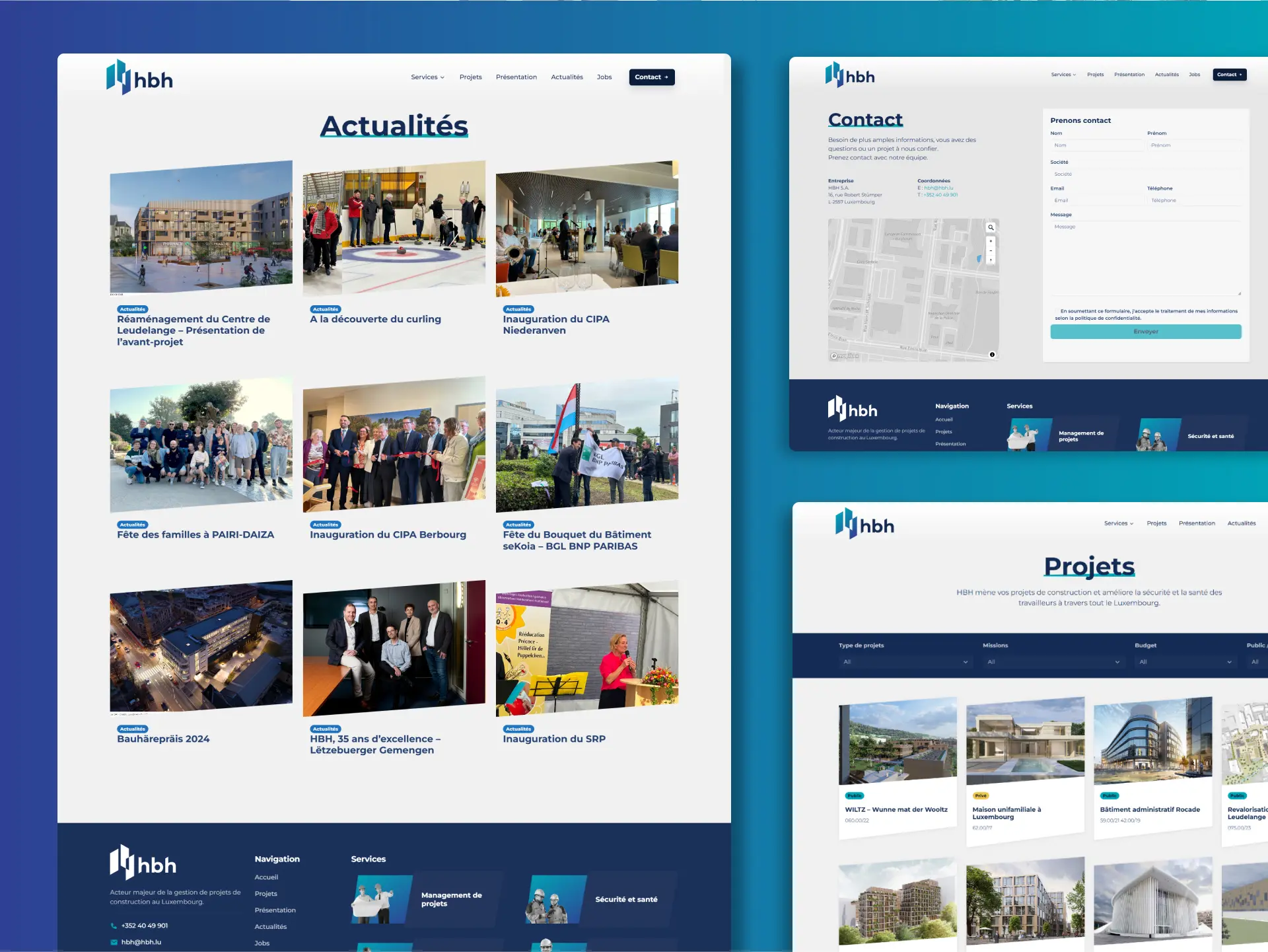HBH est un pilier du secteur de la gestion de projets de construction au Luxembourg. Pour accompagner leur croissance et moderniser leur image, ils nous ont confié la refonte complète de leur site web. Leur objectif ? Disposer d’un outil fiable, performant et simple à administrer en interne, tout en respectant leur identité de marque.